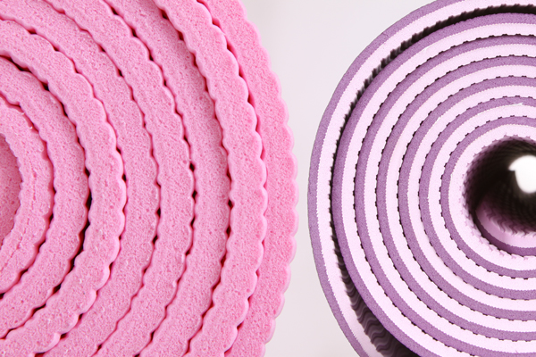 除了材质以外,厚薄也比较重要。关于瑜伽垫的厚度,最基本的一个建议是,初学者可以使用厚一些如6毫米厚的瑜伽垫,目的是防止运动损伤。在有一定基础和经验之后,可以改用3.5毫米至5毫米厚度的瑜伽垫。当然,假如你非常怕“痛”,可以选用相对较厚的瑜伽垫练习。